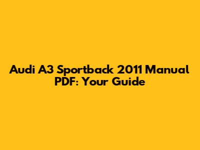 Audi A3 Sportback 2011 Manual PDF: Your Guide