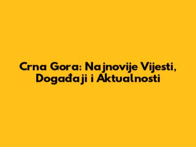 Crna Gora: Najnovije Vijesti, Događaji I Aktualnosti