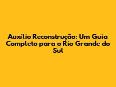 O Que É Auxílio Reconstrução No Rio Grande Do Sul?