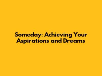 Someday: Achieving Your Aspirations And Dreams